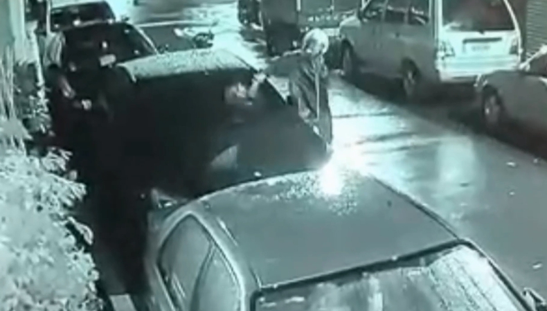 凌晨3點多,嫌犯穿雨衣鬼鬼祟祟,從機車上拿把鐵鎚,毫不留情砸向轎車,擋風玻璃、兩面車窗,前擋風玻璃被砸一個洞,他轉身後再砸後車廂,重重敲擊,但破窗後,嫌犯沒打算要行竊,反而騎車逃逸,巷弄停兩排轎車,但唯獨這輛百萬轎車被砸,到底有什麼深仇大恨,需要持鐵鎚砸車?