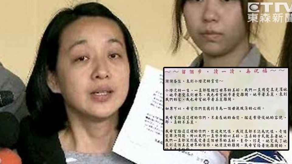 我希望踏進這裡的你們,能收起仇恨,我從來都不認為仇恨、責備能解決問題,所以我們一直努力的以美好、溫柔的方式教養著她,我們一直都深刻感受著這個世界的美好,至今,仍是。她完成了她來到這個美麗世界的任務,她瀟灑的離開。我希望陪著他離開的,仍是滿滿的愛。