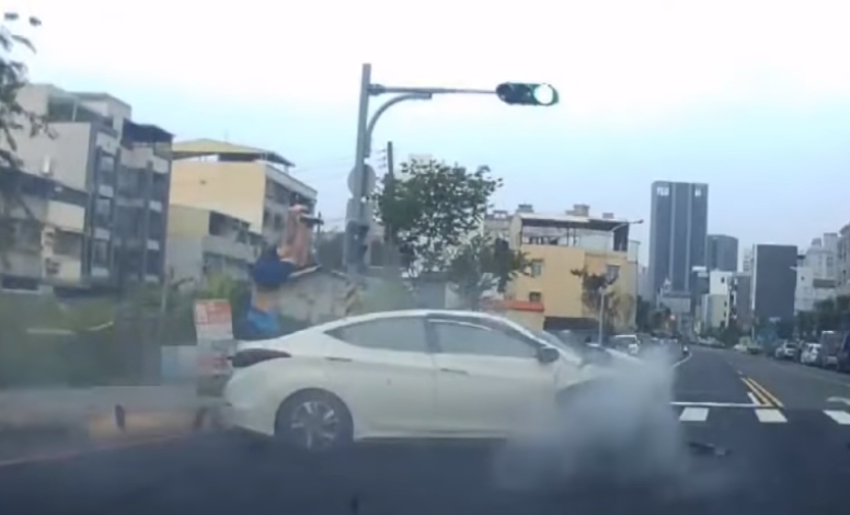 機車騎士騎在路上,下一秒突然有一輛白色轎車,朝他高速衝了過來,只見車輛180度失控甩尾,揚起大片煙霧,騎士連人帶車被撞飛,還在空中翻了幾圈後,才重摔在地上,一旁計程車也被波及,狠狠撞上路邊電線桿,嚴重車禍意外,共造成4車連環撞,6個人受傷,警消獲報急忙趕來救援,肇事的劉姓駕駛,年紀輕輕只有19歲,帶著酒氣被當場逮個正著。