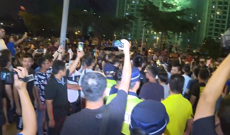 ▼眾多民眾聚集於保母住處,要求檢警對涉案保姆羈押。(圖/東森新聞)