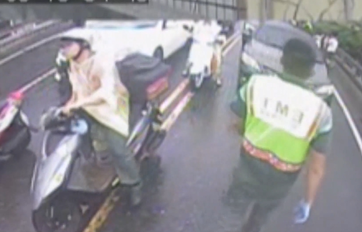 救護車緊急出動,中華路橋上大塞車,因為剛剛發生三車連環撞,肇事的廂型車駕駛被夾在駕駛座上,情況危及。