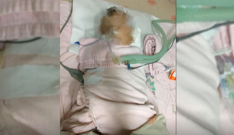 4個月大的小男嬰,被緊急送醫,插管治療,一旁家長焦急又不捨,拍下照片紀錄,指控是保母造成的。