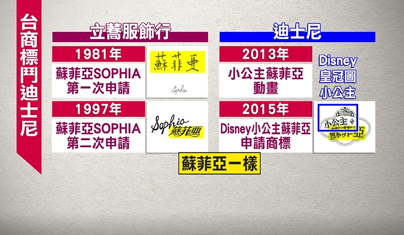 智慧財產法院行政庭長李維心:「(迪士尼)出蘇菲亞的卡通嘛,所以他想說在台灣就是要申請商標註冊,沒想到有申請蘇菲亞的他(立蕎服飾)已經申請到了,就是後面的人就沒辦法,除非跟他先前的人先講好。」