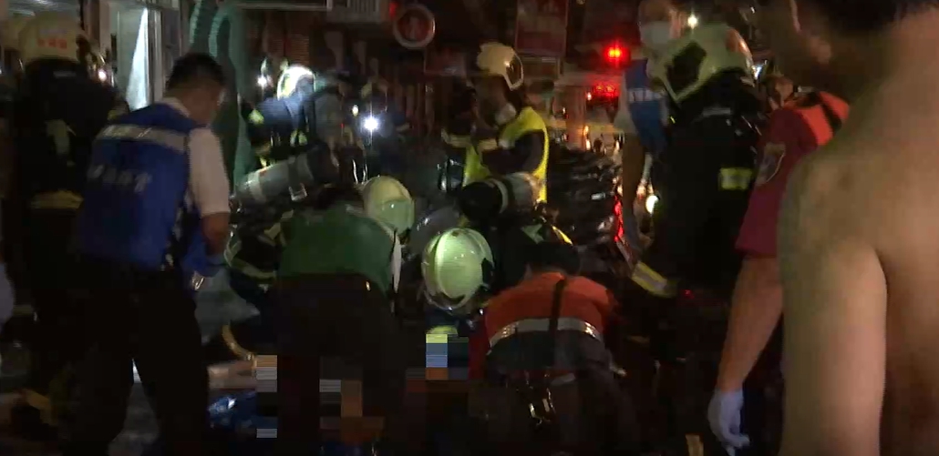 半夜公寓二樓突然竄火,一對母子受困屋內,消防獲報進到火場救人,兒子先被救出,當時全身燻黑,沒了生命跡象,現場實施CPR,緊接著送上救護車,過沒多久母親被救出同樣沒了生命跡象。