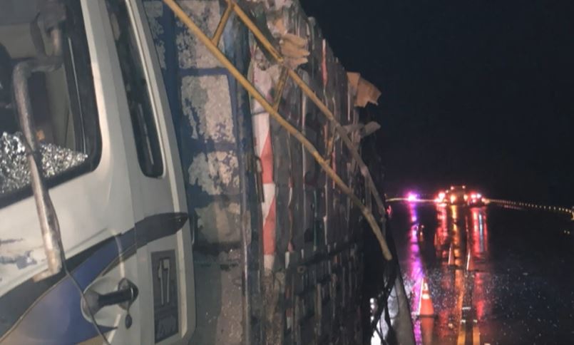 南迴公路昨天(5日)下起瞬間大雨,一輛搭載陸客團北上的遊覽車傍晚六點多,在台9線多良路段,與對向車道的大貨車發生擦撞,車玻璃幾乎全碎,車上總共有六名乘客被劃傷送醫。