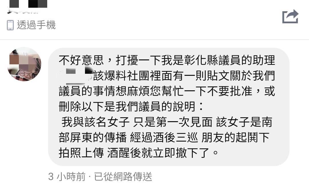 ▼議員助理發訊息澄清。(圖/翻攝自爆料公社)