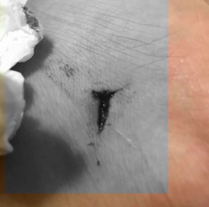 ▼網紅她痛到在網路PO文,說傷口很深不但流血也讓她驚魂未定。(圖片經變色處理)(圖/東森新聞)
