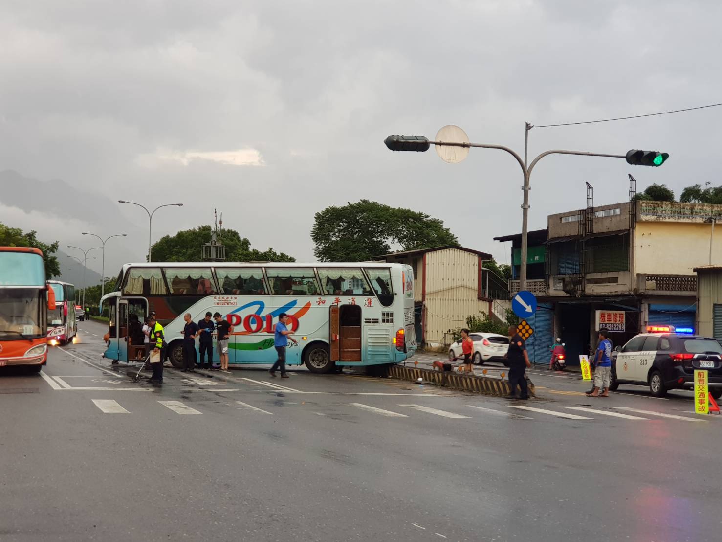 花蓮台九線191.5K今(8)日傍晚發生遊覽車自撞意外,一輛載有新加坡團客的遊覽車由太魯閣方向往花蓮市區前進,疑似因天雨路滑不慎自撞電線桿,13人團客中,有7人受到輕傷,目前已送醫救治。