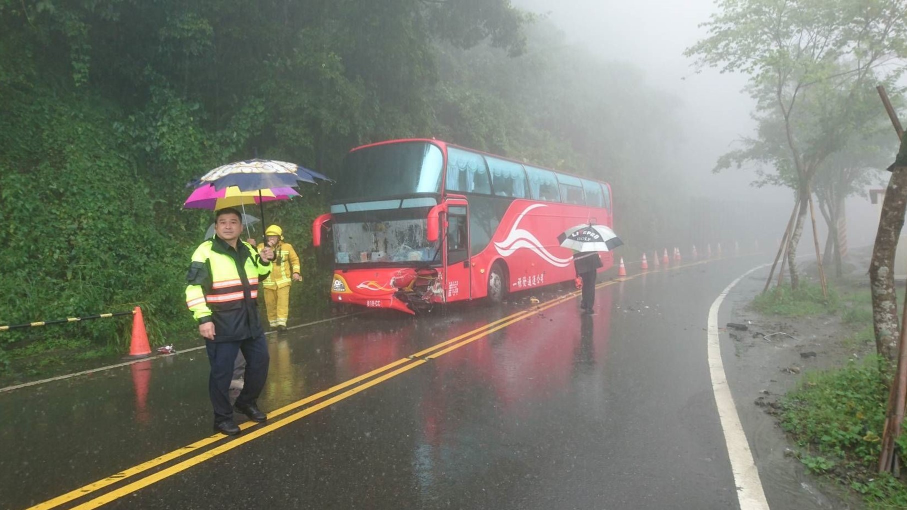 事發地點是在台18線78公里處,消防局獲報後,出動救護車及消防隊員上山搶救,共有11名傷者。由於撞擊力道之大,休旅車車頭幾乎全毀,遊覽車玻璃也碎裂成蜘蛛網狀。