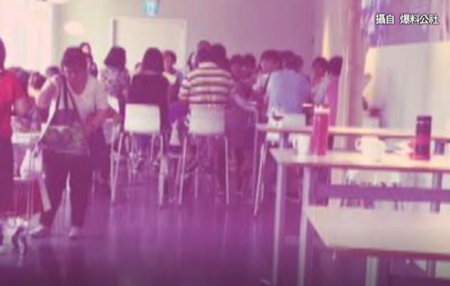▼美食街的椅子全被拿到最後方,一群人坐在一起還邊討論(圖/翻攝自臉書 爆料公社)