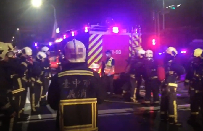 台北市北投明德路一棟汽修廠,凌晨四點多發生大火,火勢蔓延到隔壁公寓,汽修廠的二樓是住家,一共有兩名女子受困,目前找到兩人,但是已經沒有生命跡象。