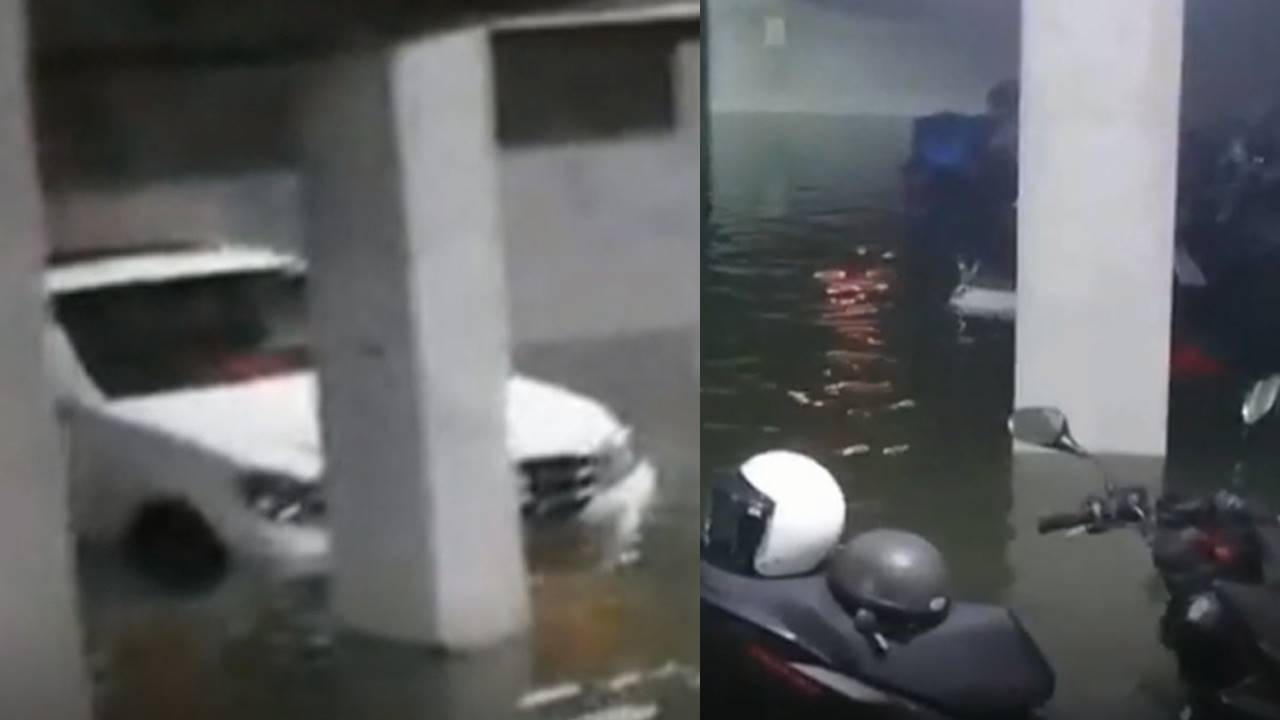 今(13)日早上,台南市的雨來的又快又急,大同路二段的這個停車場災情相當慘重,總共有七台的摩托車跟一輛賓士都在水裡動彈不得,民眾眼睜睜看著愛車泡在水裡,心急如焚打著電話。