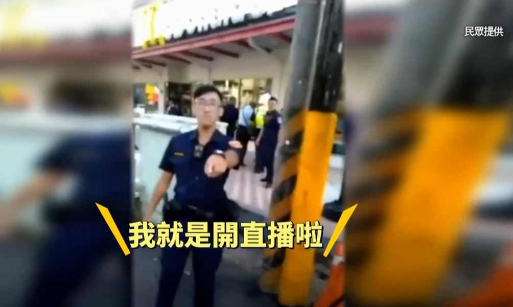 街頭開嗆直播主vs.員警:「竹東分局警察拿警棍打人啦,你不要開直播喔,怎樣啦,怎樣啦,我們現在在處理公事喔,你不要開直播喔,他罵我XXX ,我不爽啦,有罵你嗎,我就是開直播啦。」
