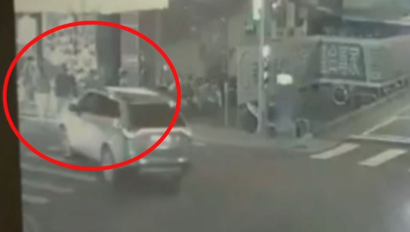 從監視器畫面可以看到,昨(17)日晚上接近九點,一家人看見路口轉為綠燈準備過斑馬線,才剛踏出沒幾步,對向轎車卻沒有禮讓行人直接左轉,護妻子的父親追了上去,發現駕駛臨停紅線。