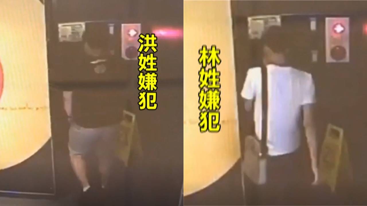 ▼黑衣男子走進速食店的洗手間內,隨後另名白衣男子也跟著進去。(圖/東森新聞)