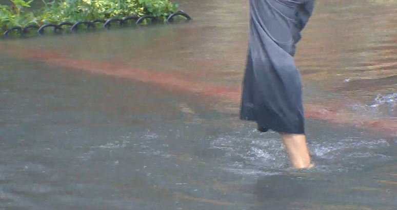雙北地區在下午下起強降雨,台北市區積水高度一度來到30公分!在承德路和錦西街口這邊,警方還用封鎖線,將積水較深的地方圍起來,民眾走在騎樓,小腿肚以下全都泡在水裡。另外在社子,水一度積到機車輪胎高,不過雨勢轉小後積水也迅速退去,後續清掃也讓民眾叫苦連天。