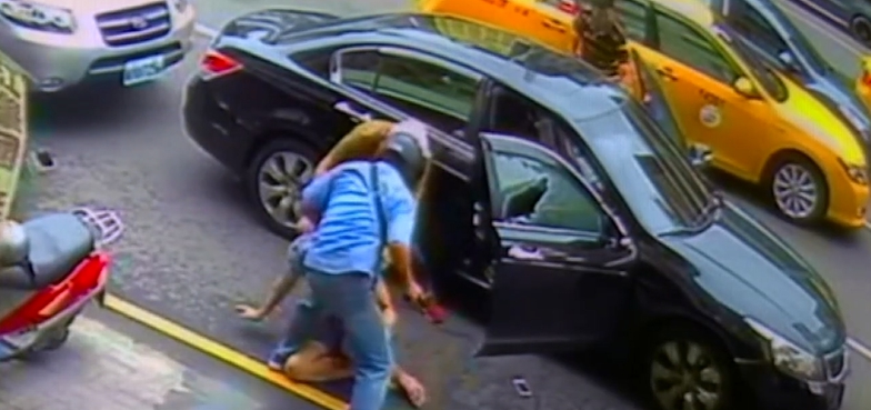 黑車駕駛疾駛在馬路上,兩名便衣員警跟在後方 一路追趕,把車子攔下後,甚至直接拔槍對準嫌犯,並將他拉下車壓制在地,另外一名同夥同樣也被警方上銬要帶回派出所偵辦,而其實早在追捕過程中,員警就已經朝嫌犯座車一連轟了四槍,而地點還就在台中市江肇國議員服務處門口。