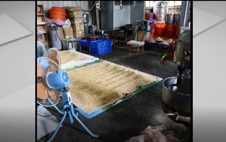 不查還好,一查真的傻眼,洗好的黃豆,就這樣攤在骯髒地板上,一旁老鼠和蟑螂橫竄,油鍋、豆皮、肉鬆,隨便放在廚房角落,還沒開封的原物料,堆在工廠另一頭,環境真的很髒亂。
