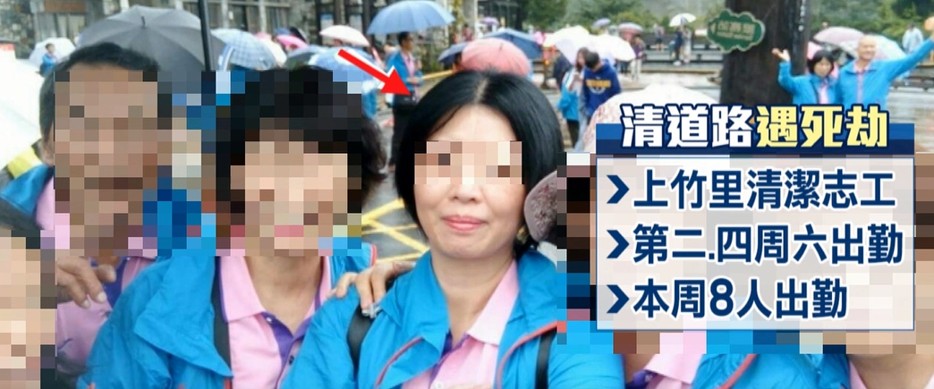 意外身亡的62歲清潔志工黃月珍過去就常常參與里民活動,留下不少和街坊鄰居的合影,但這回只是和平常一樣,外出替里內環境清潔盡份心理,沒想到卻再也回不了家,同樣遭遇不幸的還有她。
