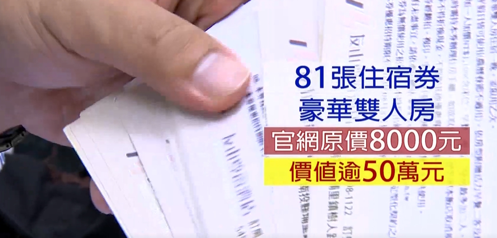 ▼江小姐手上住宿券換算成現金,總值50萬。(圖/東森新聞)