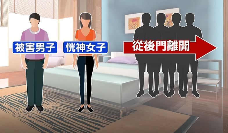 ▼當時共有五男一女在房間內,其中四名男子在警方抵達時從後門離開。(圖/東森新聞)