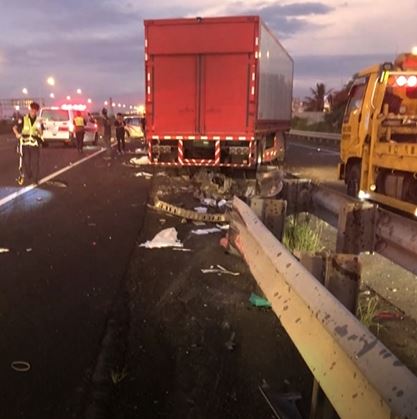 國道中山高新營路段30日清晨5點左右發生死亡車禍,一輛賓士車疑似開過頭,竟然在南向車道的路肩倒車,打算駛入新營交流道,結果遭外側車道的聯結車追撞,賓士車當場被撞到全毀宛如廢鐵,74歲的張姓駕駛當場受困,送醫後仍宣告不治,肇事原因仍待調查釐清。