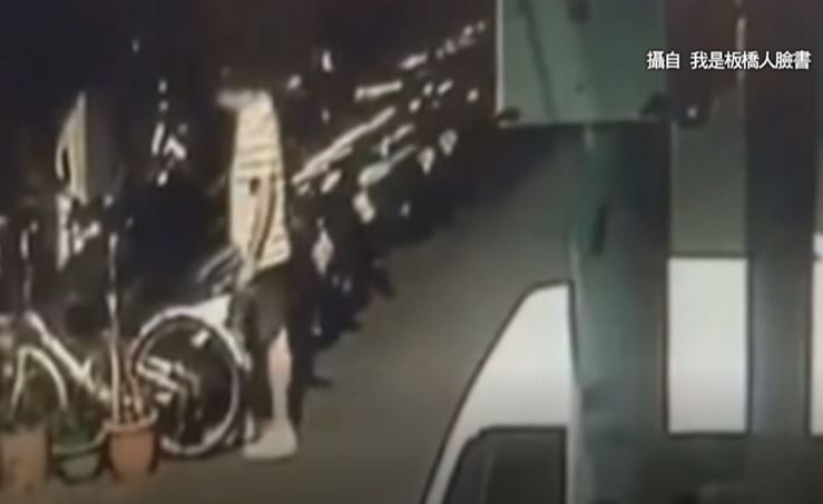 ▼男子經過巷弄選定一輛機車,拿著小刀劃過椅墊。(圖/翻攝自臉書 我是板橋人)