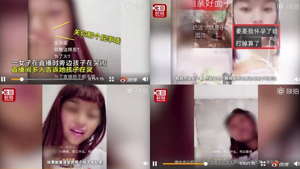直播主抓起孩子,就往旁邊一丟,還發出「砰」一聲的巨大聲響,網友才發現孩子根本才出生沒幾月,還是個嬰兒,嬰兒重摔在地,頓時哭得更加淒厲,讓人十分心疼,不少網友都出言制止,「為什麼要這樣對孩子?!」但這些網友只是都被趕出直播間,沒有人知道孩子後來的情況如何。
