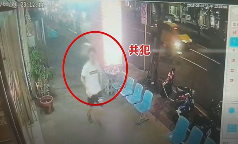 騎樓底下,一名穿著白色衣服的男子,快速奔跑,接著後方又緊跟一名黑衣男,手裡還拿著一大把刀,看起來相當慌張,原來他們是嫌犯,砍完仇家就快速逃離。