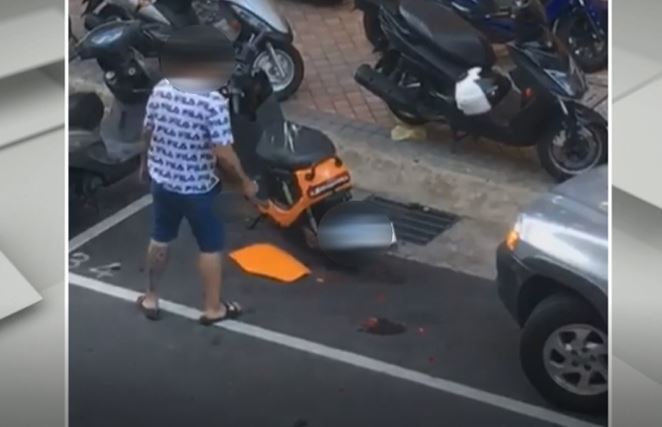 ▼一名男子持開山刀追人,但因為沒追到人,就把氣出在對方電動機車上。(圖/東森新聞)