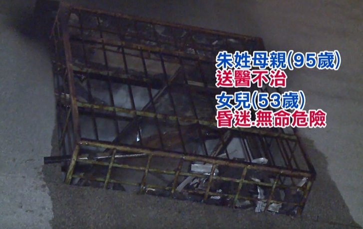 搶救30分鐘後,火勢才成功控制撲滅,就在救援過程中,一對母女受困屋內,雙雙被救出,分別是95歲的母親跟53歲的女兒,但救出時,母親已經沒了呼吸心跳,送醫不治,至於女兒昏迷,沒有生命危險。