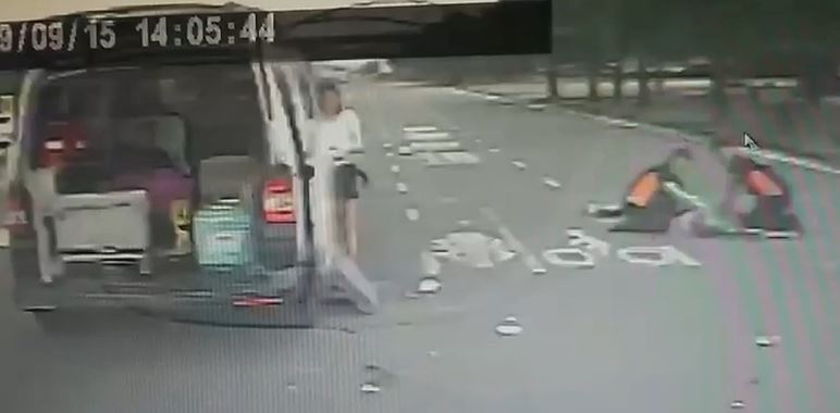 車禍意外發生在15日下午一點多,民營救護車載送患者要到高醫,半路中行屏東麟洛國中前這個路口時,闖紅燈撞上綠燈直行的鍾姓機車,這一撞,嚇得病患家屬站在民間救護車旁不知所措,只見民間救護車的救護員趕緊替騎士CPR,直到消防隊趕到才由消防隊員接手。