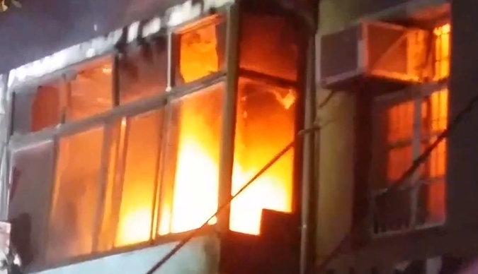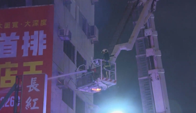有消防員進入火場二樓將窗戶拆除,方便其他消防員救火,有的消防員則是負責在側面灑水,還有人搭上雲梯車高空射水防護,因為風勢不小,擔心火勢再延燒。