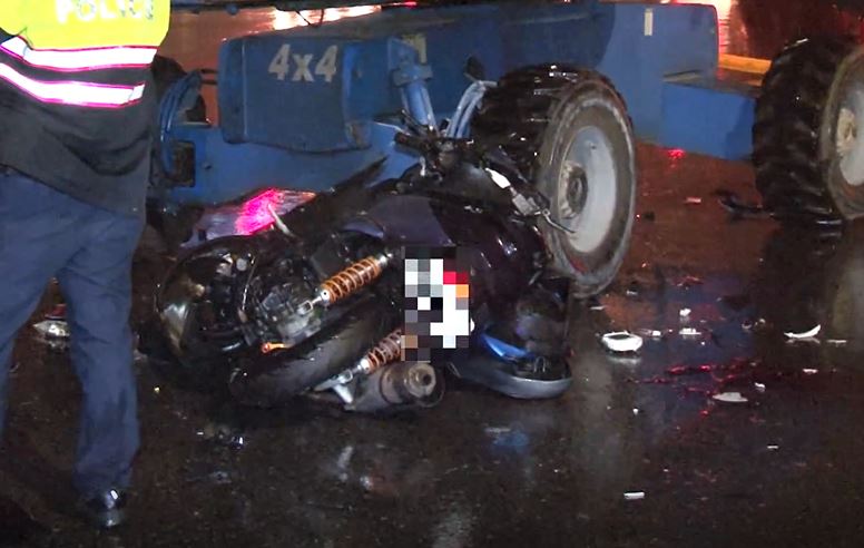 當時下著大雨,警消獲報到場後採證調查,機車撞得面目全非,年輕騎士頭部重創,當場失去生命跡象,送醫搶救傷重不治,但到底怎麼撞上的,現場這名23歲的沈姓男子,就是高空作業車駕駛,一度嚇得愣在現場,他向警方解釋是機車騎士突然撞上他的。