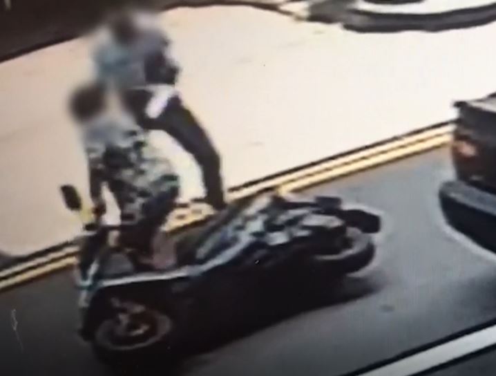 六十幾歲的老闆娘和老闆先後追出去,老闆娘與嫌犯發生拉扯,過程中老闆娘還將犯嫌機車推倒,犯嫌竟用力甩開老闆娘,趕緊落跑。