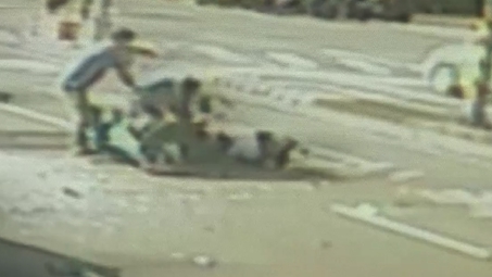 上班時間中清路上車水馬龍,機車穿梭在車陣中,突然一輛機車擦撞前方貨車,騎士連人帶車倒在車道上一動也不動,監視器畫面中,貨車經過後,突然就看機車摔到,騎士人倒向內線車道,幸好後方車輛發現急踩煞車沒有撞上去,車禍意外發生在27日上午八點多,25歲的王姓男子騎車行經中清路時追撞前方小貨車,54歲的貨車瞿姓駕駛也趕緊停下車。