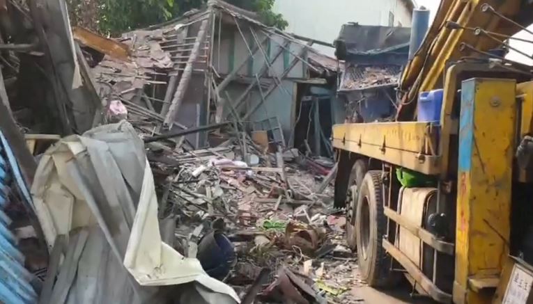 警消利用破壞器材,把車門鋸開,終於把人救出來送醫,只是看看現場,宛如被轟炸過一般,一間老房,梁柱、屋頂崩塌,牆壁橫倒幾乎全毀,另一間則是鐵捲門被撞壞,牆壁結構被破壞。