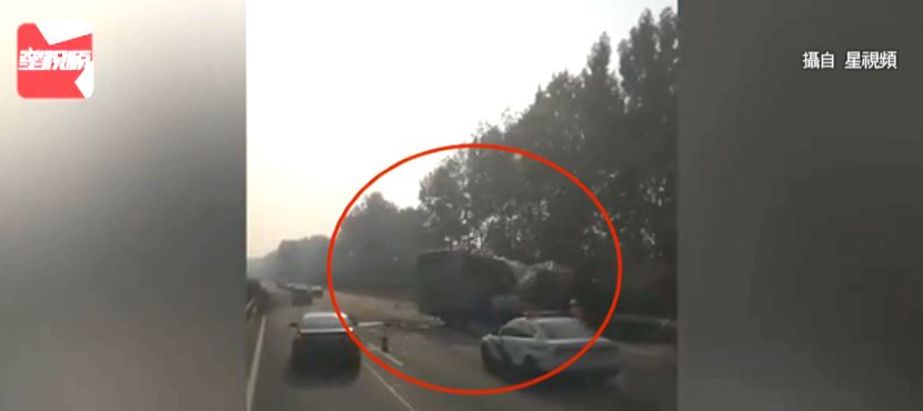 果然下一秒鐘,整輛車衝上中央分隔島,然後闖入對向車道和一輛貨車對撞,由於雙方撞擊力道相當大。
