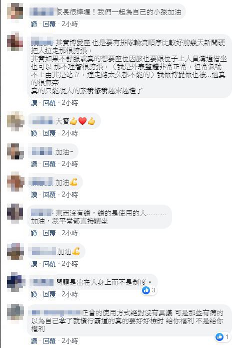 貼文一出,許多網友紛紛留言替原PO加油打氣,不少人直言,「老實說真正需要的人是不會出聲的」、「同理心很重要」、「相信善良的人也是大於壞心的人」。警方也呼籲博愛座的設立,是給予需要的人方便,並非只能留給訂定族群,希望民眾能多一分同理心互相體諒。