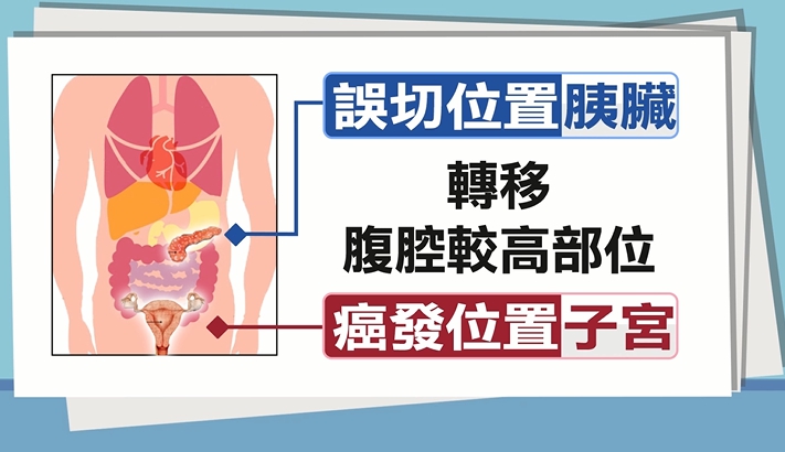 明明發生在子宮附近的癌,手術怎麼會切到胰臟,病患的子宮內膜癌,癌發點在子宮附近,因為復發,可能轉移向上擴散到腹腔較高位置,但是執刀的醫師卻切錯了。
