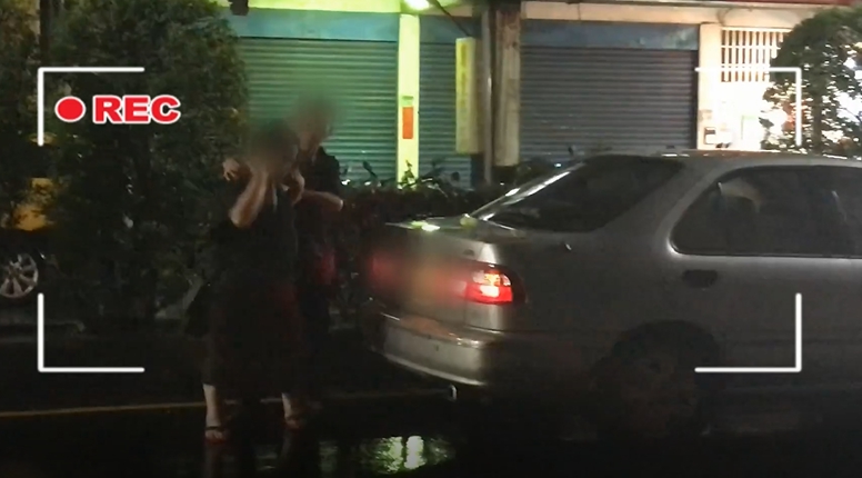 下雨天的凌晨,我們直擊路中央這名女子站在車前方,下一秒突然激動,用拳頭用力敲打引擎蓋,大罵站在一旁的男子。