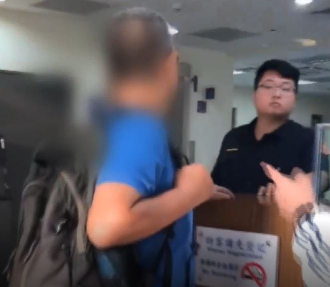 穿藍衣男子疑似想烙跑,被捷運站務員跟保全攔下。