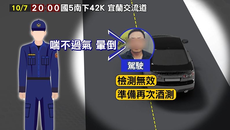 ▼宜蘭一名陳姓男子,被警方攔查酒測,疑似因為太過緊張,突然喘不過氣昏倒。(圖/東森新聞)