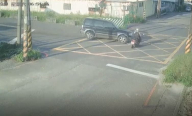 馬路上一輛藍色轎車超車,快速行經路口,卻沒發現旁邊一輛機車急駛而來,只見機車騎士直接撞上轎車左車門,在空中翻了一圈重摔倒地,安全帽還有機車零件噴飛在一旁。