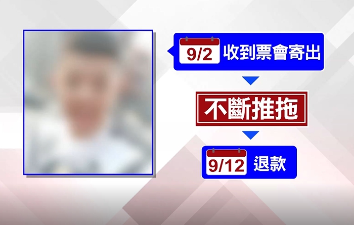 李姓男子網路上說,一張票9百多塊,加上運費算一千塊,蔡小姐和朋友想看9月28日和29日兩天賽事,和朋友各買兩天4張票付了4千塊,說好9月2日拿到票就會寄出,但李姓男子不斷推拖,直到12日才完成退款,但不是人人都像蔡小姐已經拿回退款。