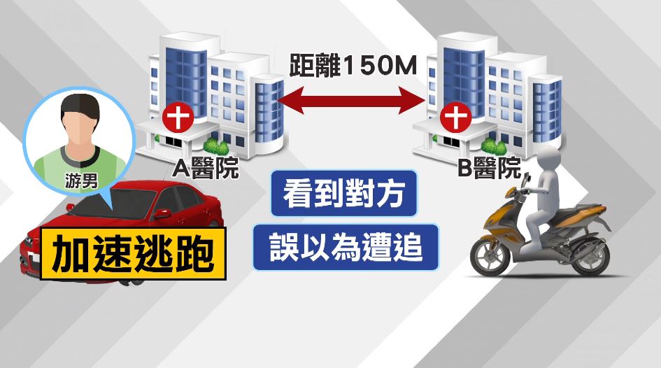 原來12號晚上有兩派青年,因為前一晚在ktv起衝突,相約在冬山鄉一間宮廟談判,雙方掛彩各自就醫,其中一位游姓男子開車載,朋友到醫院,碰巧看到對方人馬騎機車,到另一間醫院,兩間醫院距離150公尺,游姓男子以為對方追了過來,情急之下開車逃跑。