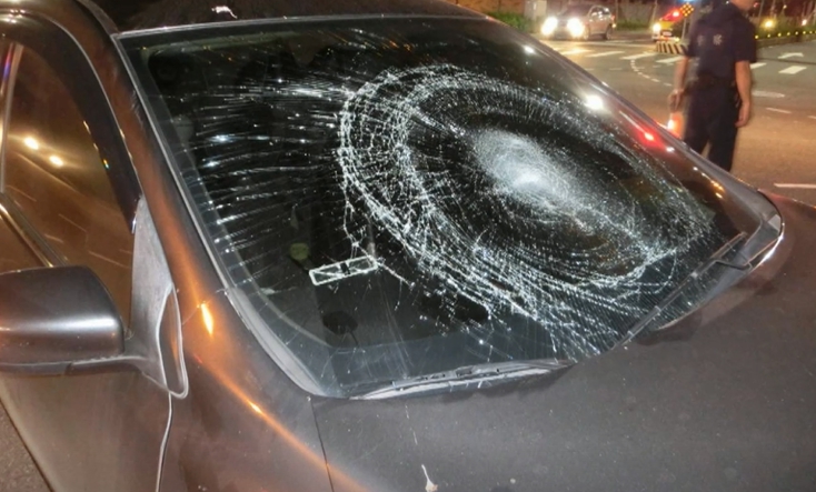 ▼汽車擋風玻璃碎裂成蜘蛛網狀。(圖/翻攝畫面)