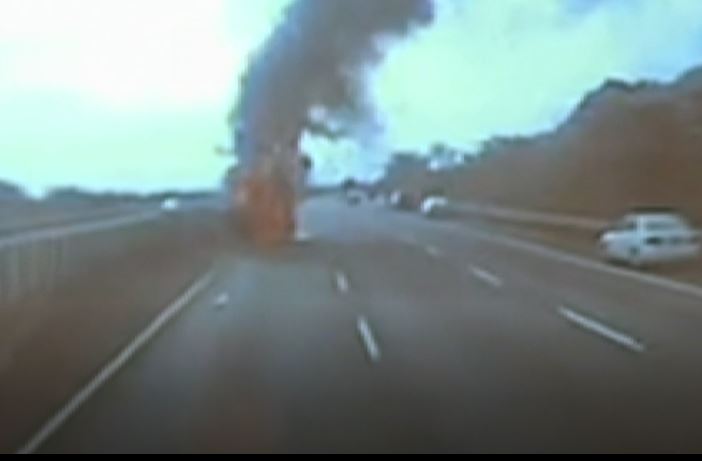 ▼所幸火燒車駕駛也早已逃出車外。(圖/東森新聞)