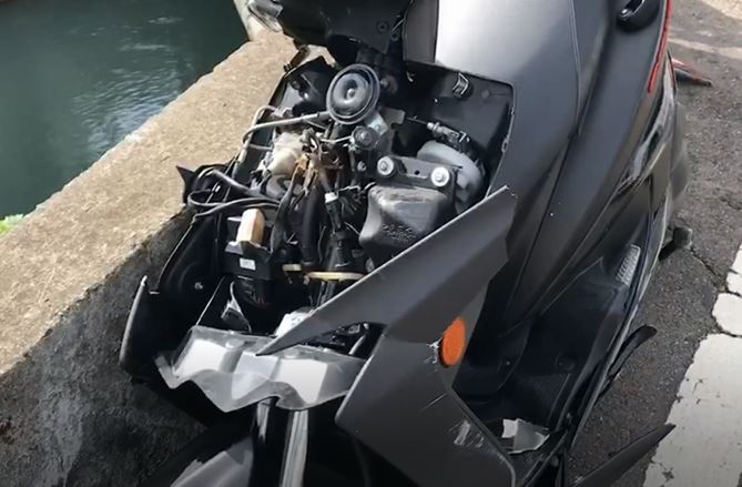 宋姓高中生的舅舅,提起外甥滿是不捨,整個車禍現場還能清楚看見被撞倒的機車,車殼破裂,不難想像當時撞擊力道有多猛烈。