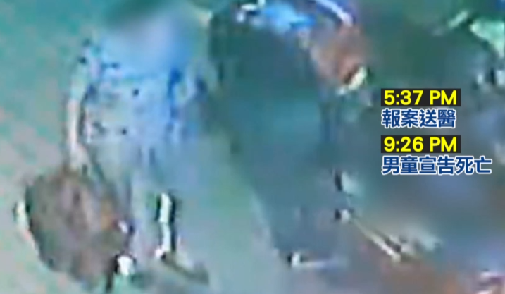 救護人員緊急把重傷的小男童抱上擔架,旁邊拿著提袋,整理物品的是孩子的外婆,男童是在5點37分獲報送醫,晚間9點26分宣告不治,同住的外婆馬上被帶回訊問。